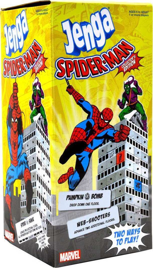 In this version of Jenga, each player moves their Spider-Man marker up the building to capture the Green Goblin before the Jenga tower falls. Use the spinner to determine how many spaces up the building your Spider-Man marker moves and how many Jenga blocks you remove to add to the top of the tower. Some of the Jenga blocks are “detective blocks” that have...