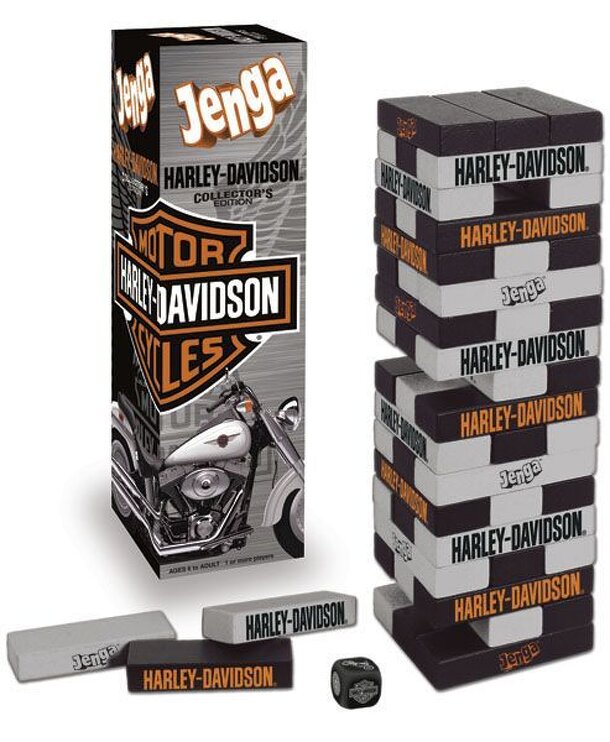 As the tower builds, so does the difficulty…and so does the fun! This classic tower building game features 54 orange and grey hardwood blocks decked out with the iconic Harley-Davidson logo and TWO ways to play. Build your HD-themed Jenga tower the traditional way or play a new and even more challenging game with custom Harley rules and a Harley-themed...