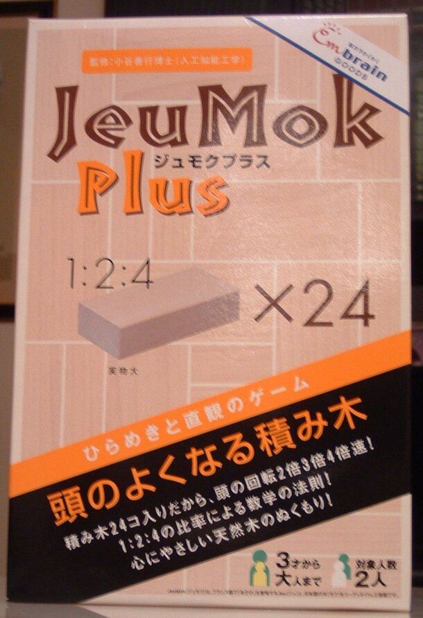 The game consists of 24 solid pieces of wood 1x2x4 and a cloth bag that can contain them and has two different board printed on the two sides. A particular dice and another couple of cloth pieces are included. The rules describe five different games, all for two players. The first and most important (being quoted on the box) is a version of domineering...