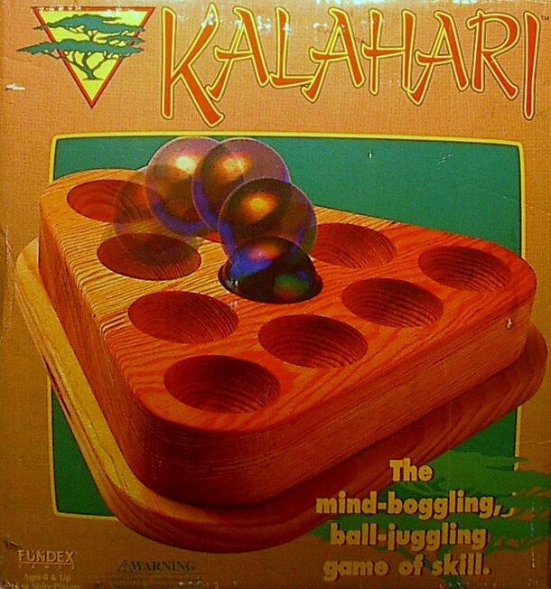 Kalahari consists of a triangular wooden board with cups numbered 0-9. Place the ball in cup #0 and flip it to cup #1, then #2, in order. Once you get to 9, you go to 1-0 for ten, 1-1 for eleven 1-2 for twelve and so on. The goal is to see how high of a score you can get without dropping the ball. When the ball is dropped, or land in the wrong cup, you...