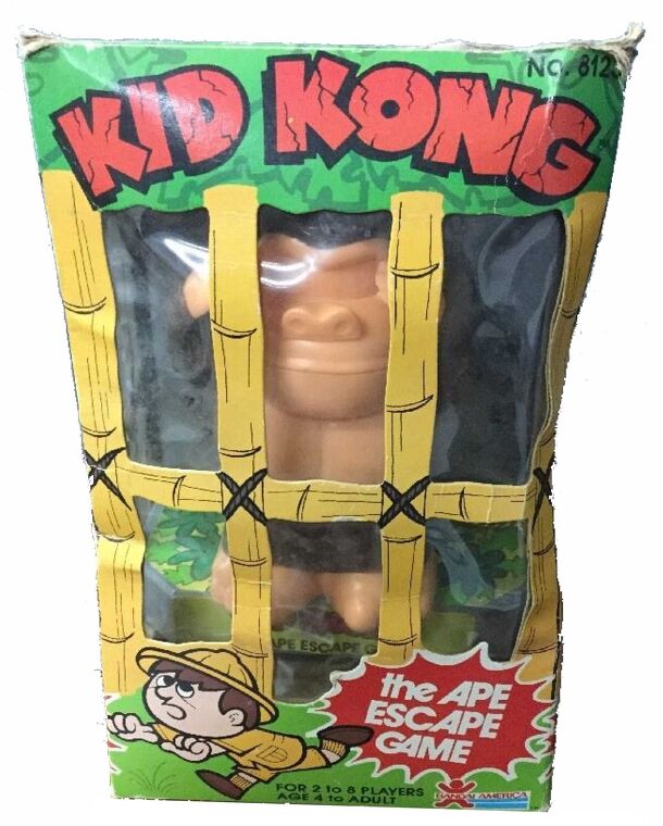 Kid Kong is captured and wants to break away. Setup involves turning the dial on the back of the base of the Kid Kong unit. This randomly selects a specific hole which will eventually trigger Kid Kong when the appropriate peg (from the chain) is inserted. Players take turns trying to chain Kid Kong by inserting both pegs, from the chain, into any of the 8...
