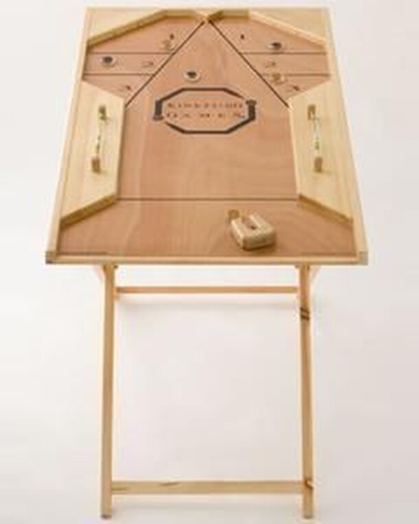 From the website: We are proud to introduce the first new game of the millennium, Kineti-Go. Your family will be amazed at the different angles, twists, turns and movements that naturally occur every time you play. The gist of the game is by using the exclusive "Shucker", you shoot magnetized pucks toward the designated point areas. The "Shucker" sends the...