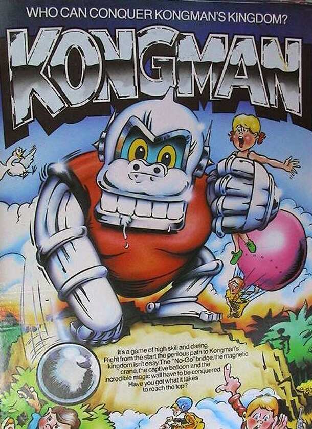 Box text: It's a game of high skill and daring. The perilous path to Kongman's kingdom isn't easy. The "No-Go" bridge, the magnetic crane, the captive balloon and the incredible magic wall have to be conquered. Have you got what it takes to reach the top? A dexterity game similar to Screwball Scramble, but battery operated and vertical (a timer will stop...
