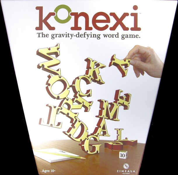 The gravity-defying word game! Konexi is the 3D word-building game that will have you pushing your luck and on the edge of your seat! If Scrabble and Jenga got together and had a bit too much to drink, Konexi might be their "gift" nine months later. Take turns adding letters to a teetering tower of words. Go for longer words — upward, downward, or sideways...