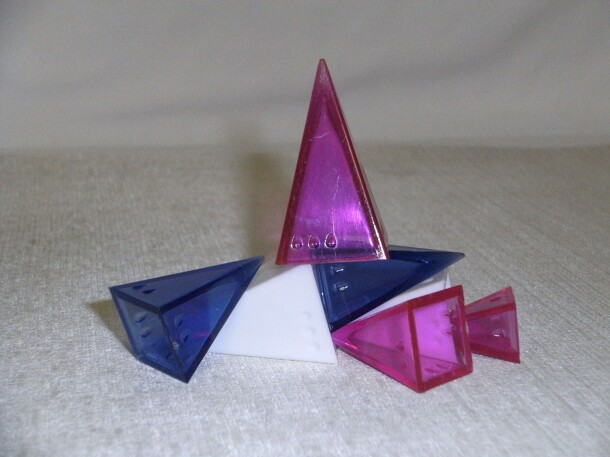 Players stack pyramids, not allowing them to touch more pieces than the number of pips on the piece. * Each player must place a piece of a different size than the previous placement. (The first piece placed on the Foundation is not affected by this rule.) * The point of one piece cannot touch the inside point of another piece * A piece can be placed on top...
