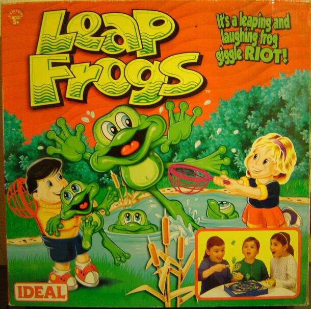 Simple game in the 18th Blue Peter Annual. In true Blue Peter tradition, you have to make the game first. It is a Tiddlywinks type game. Each player gets five 'frogs' and must flip them on to the board. You add scores on to the Flowers and inside the Water-Lilies. Should you be unlucky and land on a fish or into the pond, lose 10 points and 5 points...