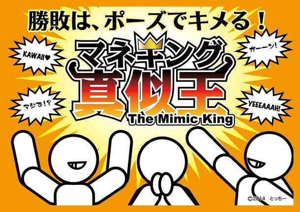 User summary: マネキング (Manekingu) is a Japanese game first published in 2014 in time for the Osaka Game Market. It was quickly re-issued in time for the Tokyo Game Market in Autumn 2014, with English included on the cards and rules, and named in English as The Mimic King. Be quick to strike a pose and shout a sentence determined by a die-roll. The slowest...