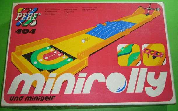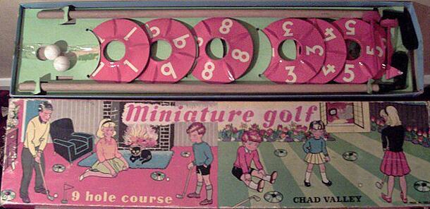 British golf game that can be played on a carpet. Metal 'rings' are provided, each with a hole in the centre and a number. Place these rings around the carpet and then you putt the ball into the hole of Number one ring. When that hole is completed, putt towards Hole 2, and so on. The player who takes the least shots after all the holes have been played...