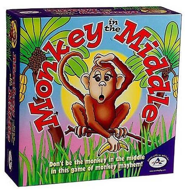 From the publisher: Monkey in the Middle is a fun skill and action game that lets players take chances with the roll of the dice. With a delightfully illustrated game board, players try to roll their monkey dice into the special "Banana Zone" to earn Banana Scoring Chips. But if you roll too hard one of your monkeys may fall into the middle and be gone! A...