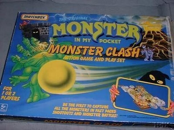 Avoid your opponent's glow in the dark rubber balls as you attempt to capture his monsters The Monster Clash Action Game and Playset (1991 Matchbox) came with 12 Series 1 figures: purple Bigfoot, yellow Kali, red Catoblepas, green Harpy, green Cerberus, red Zombie, purple Chimera, yellow Ghost, purple Mummy, yellow Charon, green Witch, and red...