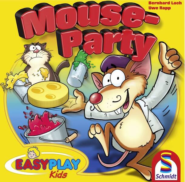 One of Haba's Mini-Spiels that come in a small tin (similar to an Altoids tin) and contain small wooden pieces. The tin lid is placed on the ball (can be done in two ways - one making the game more challenging than the other). Place the mouse in the center of the lid. Each player gets 6 wedges of cheese. Players take turns pushing a cheese wedge onto the...