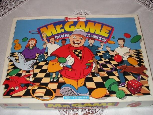 Mr Game is a self contained game module system that contains the parts, boards and instructions to play 20 games: Baseball Bagatelle, Beat The Banker, Buck Dice, Checkers, Eight By Eight, Fox and Geese, Happy Face Puzzle, Help Your Neighbor, Hoop-La, Hoses and Ladders, Morris The Farmer, Parchisi, Queen Bee, Ship Captain Mate and Crew, Shuffleboard...