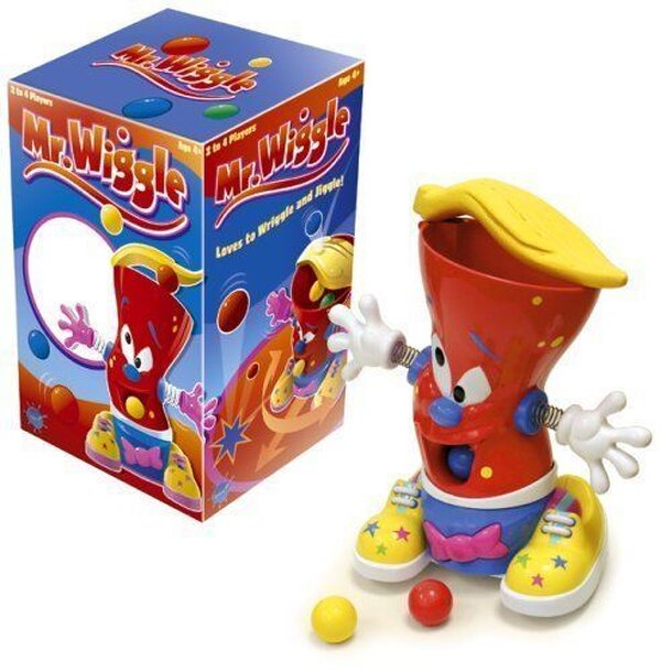 Each player takes a set of 3 of the same colored balls. Push Mr.Wiggle's bow tie to turn him on. Players have to throw their colored balls into Mr.Wiggle's head one by one trying to miss his moving wig! The first player to get all 3 of their colored balls inside Mr.Wiggle, before he spits them out, must push his bow tie to turn him off and declare...