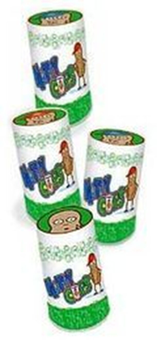 This game consists of a box with holes in the lid, 15 sticks and 12 magnets. The bottom of the box is a metal plate. The game can be played in four ways. Fishing: One player places the magnets. The other player tries to hit the magnets with the sticks. Treasure hunt: One player places the magnets in four lines of three. The other player tries to hit the...