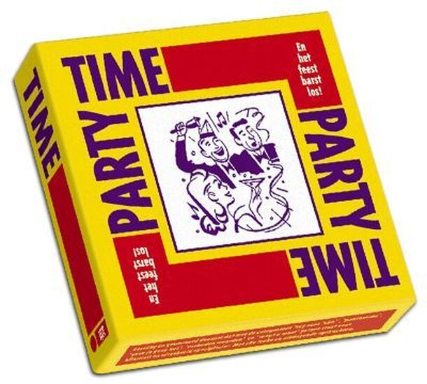 Party time is a dutch game from the Big Six series from Nova Carta. You have to form two teams. Throw a coloured dice. Every colour corresponds with a theme on a card. Red- Say uuuhh Player has to tell a story about the subject on the card without saying uh for 30 seconds Blue- Pantomime Player has to use pantomime to let his team guess the word on the...