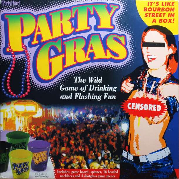Party Gras, billed as "Bourbon Street in a box", is a game of drinking, groping and flashing. Players are given strings of beads, which they can lose to, or acquire from, other players by way of instructions on the spinner or spaces on the board. In true Mardi Gras fashion, bead exchanges are most often accomplished by flashing other players, or having...