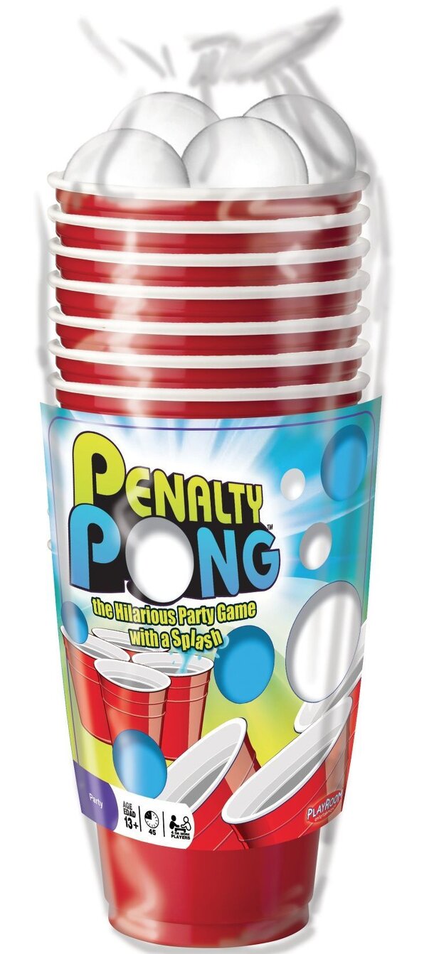 In Penalty Pong, players split into two teams, each with the goal of humiliating the members of the other team by making them do embarassing tasks while avoiding such punishment themselves. If you manage to throw or bounce your ball into an opponent's cup, that player must draw a penalty card and perform the task shown on it: call one player "Master", sing...