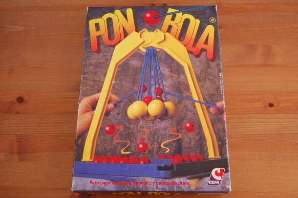 Pon Bola is a skill game for 2 to 4 players. You need nerves of steel, maximum concentration and a quiet hand. How to play: The 16 small balls are placed in the tray of the base, dividing four balls for each player (8 if only two players). Each player either picks up his stick and tosses it into a small ball, then attempts to deposit it in the "nest" of...