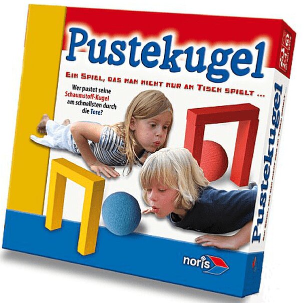 Puff foam marbles through archways A somewhat different dexterity game - Pustekugel is played on the floor, you must puff the foam marble along a self-set-up track, either against another player or team or on your own against the clock. In a game against an opponent or opposing team only the cards showing three or less archways are used. You draw a card...