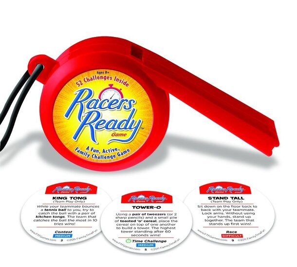 Packaged in a giant whistle, Racers Ready presents players with 52 challenges divided into three categories: Time Challenges, Contests, and Races. Playing either as individuals or in teams, players compete in the various challenges – such as building a tower out of oat rings by using tweezers or catching a tennis ball with kitchen tongs – and whoever has...