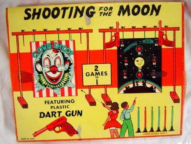 The game "board" is like a boxing ring, with a "disc shooter" in each corner, loaded with letter discs (52 discs, including a "Qu" disc and four wild discs). The players decide on a word length, then game proceeds. On your turn, you shoot a letter disc into the ring if the number present so far is insufficient or if, after studying the letters, you can't...