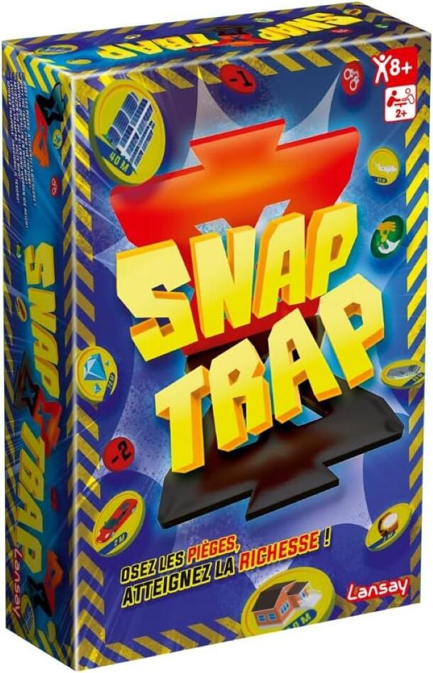 Discover Snap Trap, based on the viral mousetrap game seen on TikTok! Place the Snap Traps and tokens on a table, put on your masks, and collect as many tokens as possible to try to become the richest! Be careful not to activate the Snap Traps; they could slow you down! Play individually or in teams! —description from the publisher (translated) Découvre...