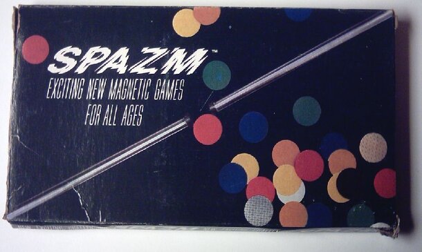 In Spazm, magnetics, strategy, skill and chance are combined with the theories of poker, rummy, solitaire, pool, and pick-up sticks. Use the Spaz-Wand, a glass stick with a magnet on the end, to pick up a chip without moving any other chips. There are seven different colors and the darker colors are worth progressively more. The gold and silver chips are...