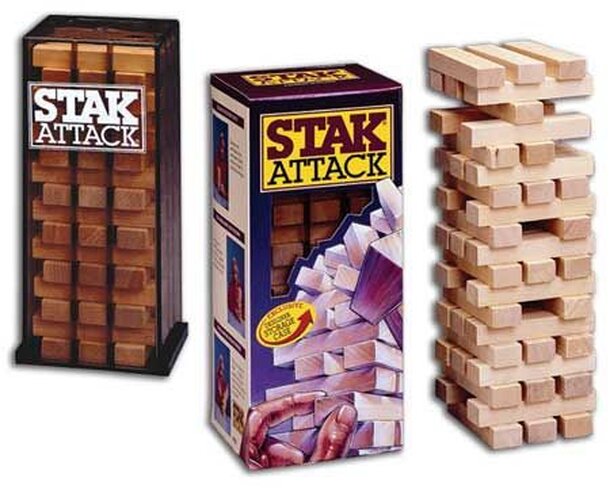 Stakkerz is a fast-paced dexterity game of precise placement and steady nerves. Players take turns "stakking" chips on a totem, with a goal of keeping the totem standing, but also attempting to sabotage the next player by making the stakk as unstable as possible! Stakkerz is playable by all age groups, with simple rules, sturdy components, and game times...