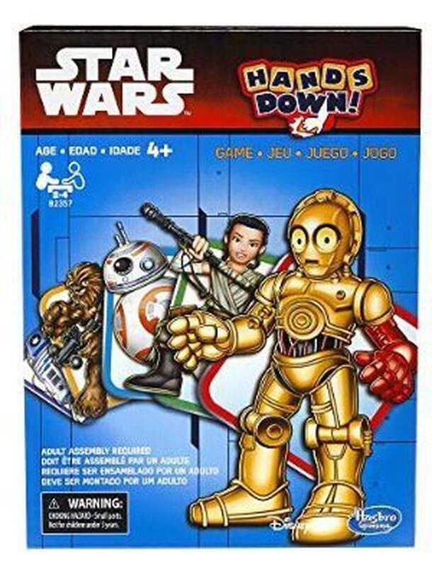 Game description from the publisher: Keep your wits about you and your eye on the cards to win at this fast-paced Star Wars version of the Hands Down card game! All you have to do is watch for matches on the spinner to the Star Wars character cards in your hand. If the spinner lands on C-3PO and you have that card, slam it down on the Target token as fast...