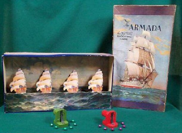 Armada is a game of strategy and accurate shooting. The objective is to occupy five islands by moving galleons to sea areas next to landing stages. Players can prevent opponents from occupying by sinking their ships and knocking down their flags. The first player to hoist his flags on five islands is the winner. Players take turns either moving two...