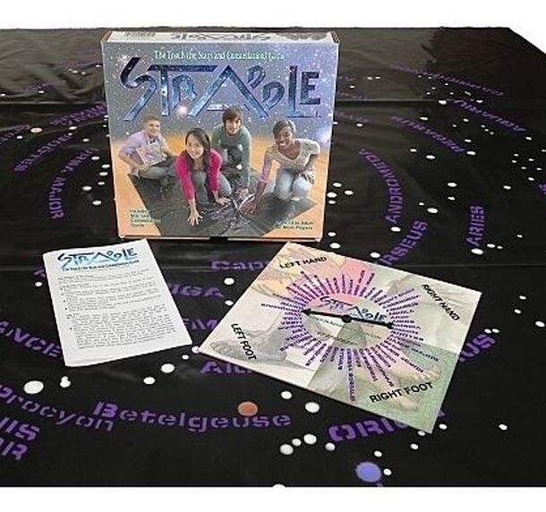 Straddle is a skill-action party game played on a giant planisphere (5 ft x 6 ft plastic playing mat) and combines a fun mix of practical and observational astronomy. Playing like Hasbro’s classic Twister game, the object is to touch a star or constellation using only your feet or hands and be the last player not to touch any other body part to the mat....