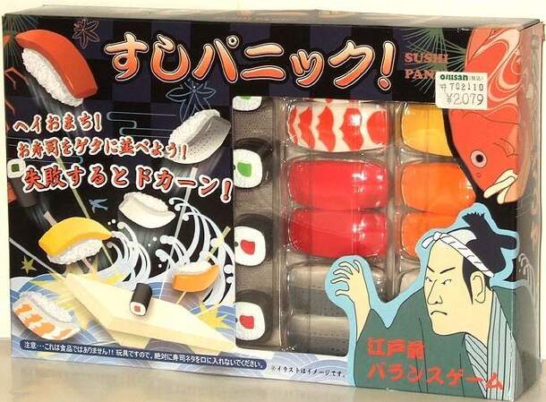 Sushi Tower is a Japanese toy-style game where players take turns stacking sushi plates on a revolving platform. As the stack of plates grows ever taller, the tower becomes more and more unstable. When the tower falls during a player's turn, they must pay for all the plates in the tower. The game includes three plates of three different colors. White...
