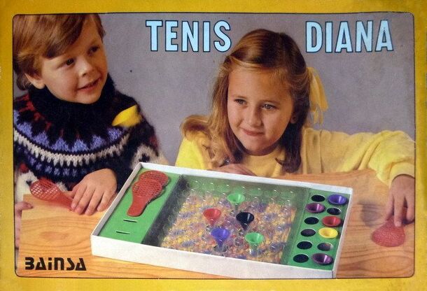 This is a tennis simulation. The board is made from cloth, the ball is velcro-covered. The "players" are catapult-like tennis rackets, with which the ball is shot over the net. A stamina point is deducted from the original points of a player for each square on the board he/she has to "run" to the place the ball landed. A player whose stamina is reduced to...