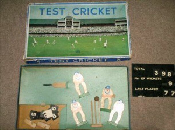 Players play out a live-action cricket game with miniature figures on a fabric playing field. One player 'bowls' a small ball from a bowler while the other player operates the batsman. Fielders are placed throughout the board to 'catch' the ball in the base between their feet. A classic and beloved family game originally released in 1977 and immensely...