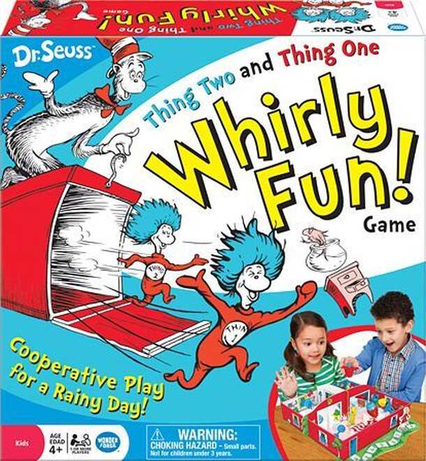 Thing One and Thing Two are running around the house making messes! Work together to clean up the house before Mother gets home. If everything is tidy when Mother comes in the door, you all win! This cooperative game is played inside the box, in which a small model of the house from The Cat in the Hat is built. Through random card draws, the house is...
