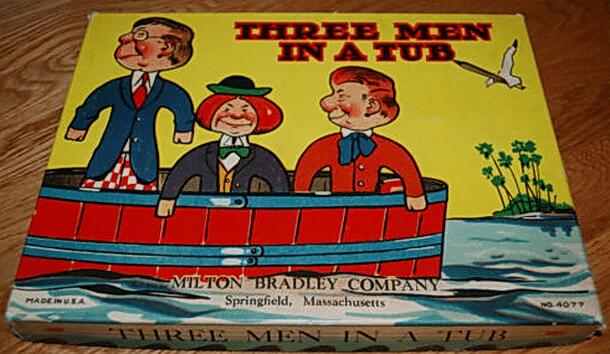 Goal: Hit the men in the tub with the balls and tip them out 1. Place the three figures back of the tub so that their fingers rest very slightly on the edge of the tub and the feet of each figure shows through one of the openings at the bottom of the tub 2. Object of the game is to snap or roll the balls at the opening, hitting the feet of the three...