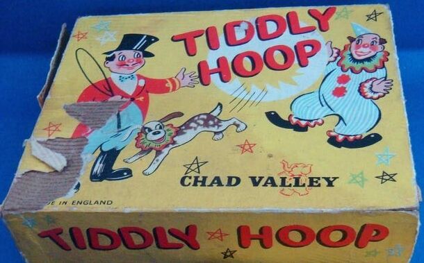 A tiddlywink variant that requires a lot of tiddle on your wink. Between the player and the scoring board is a three-dimensional clown illustration. The clown is holding up a hoop. To score anything the player must launch a counter tiddlywink fashion, up through the hoop and then onto the board. I suggest this was quite difficult to accomplish first time....