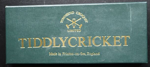 This is, as the name suggests, a game that is a combination of cricket and tiddlywinks. Contents: Minature cricket bat Minature cricket stumps Felt bowling crease 1 large and 4 small winks The wicket is set up on a table with a mat for the bowler's crease 22 inches away. The batsman holds the bat in front of the wicket, and the bowler 'bowls' by flicking a...