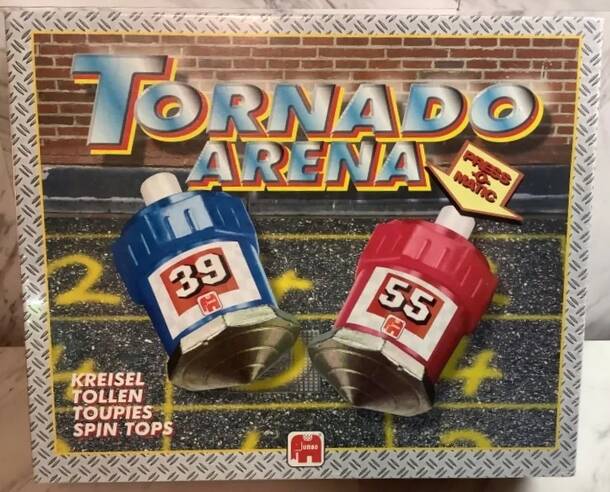 Here's a game for those who like wild and wacky excitement! You set up your pins, then the TORNADO TOP is released...and the frenzy starts! The TORNADO TOP runs riot in and out of the players territories...slamming all pins in its own way. Players furiously try to smack it away with their Deflector Gates...but who can stop the TORNADO TOP? You score for...
