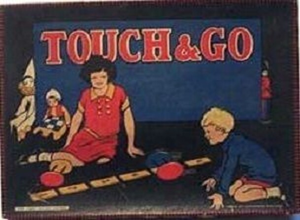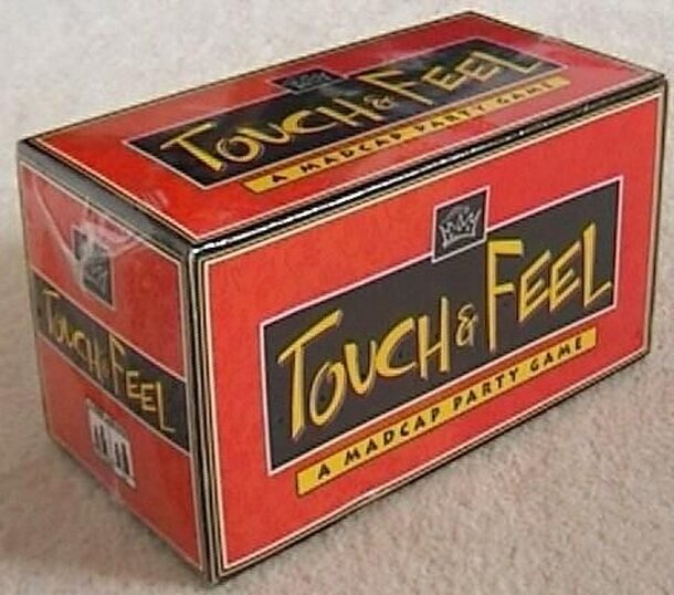 Expansion for The Touch In The Touch, plastic playing pieces (landmarks such as the Eiffel tower, objects such as a roller skate or a hamburger) are placed inside a plastic dome while cards containing sets of these figures (i.e. "Paris Landmarks") are placed around the dome. In turn, players will place their hand in the dome and attempt to locate (by feel...