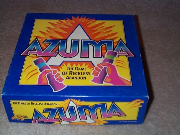 Azuma is similar to Spoons It comes with plastic sticks about 8 inches long, with stickers to mark the colors. There is one fewer stick than the number of players, so each round, one player will not get a stick. Players are dealt a hand of 7 cards. All players pass a card to their neighbor when the dealer calls out "Azuma". If no one has a "winning" hand...