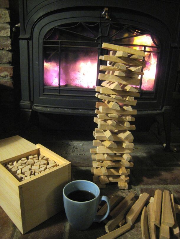 Tumblewood - A Game of Dexterity, Engineering, Strategy, and Fun Tumblewood is 55 pieces of hand-split white birch. Each piece is 4.75 inches long, yet every piece is unique in shape because it is split with a mallet and wedge in Maine USA rather than being sawed perfectly the same, by the zillions, in China. It is the unique shape created by this lovingly...