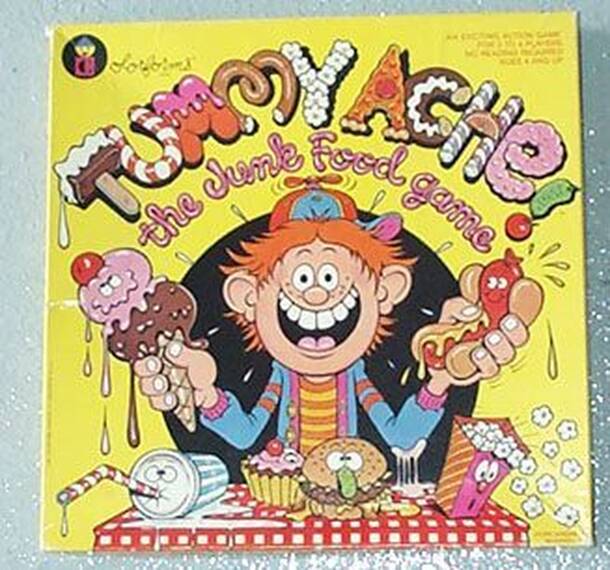 The object of the game is to feed "Tommy Tummy Ache" his favorite Junk food without giving him a "Tummy Ache" The players take turns (according to a spinner, not alternating), placing food on the mouth of the cardboard Tommy Tummy Ache character. If the food is placed improperly, the food will all spill and the player must use one of their tummy ache pills...