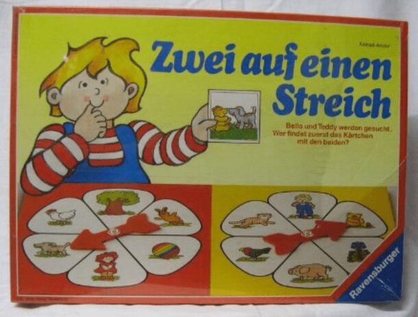 Goal of the game is to find combinations as quickly as possible. The main part of the game consists of a board with 2 spinners. Each of those spinners can point to 6 different items (between them: 7 animals, a girl, a boy, a tree, a flower and a ball). For each combination of the 2 spinners, there is a tile with a drawn scene of those two items and thus...