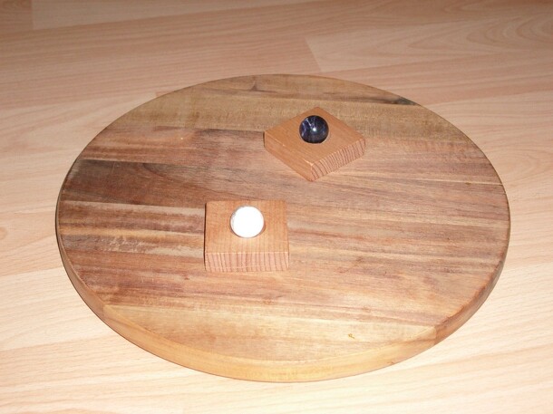 Von der Erdenscheybe is a four-player version of Kosakenschubsen, the hand-crafted finger flicking game by Dieter Zander from Historische Spiele Zander, published at Essen Spiel 2012. All 4 participants play against each other. Again, it's about pushing the opponents off the board and trying to get to the middle of the game by advancing and thus winning....