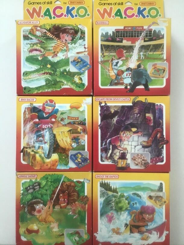 W.A.C.K.O. stands for Wild and Crazy Kids Only. These series of action/dexterity games included the following: BMX Racer Gobblers Shoot the Rapids Escape from Devil's Castle Baseball Alligator Alley Hoops Jungle Safari Some were just races, with each person taking a turn and the best (fastest, most completions) would win, while others actually had a head...
