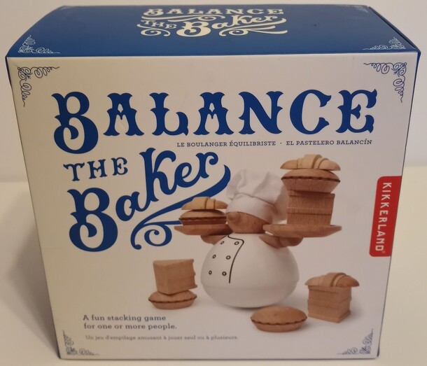A balancing game with a "platter" suspended from a gallows. On your turn you need to place a piece on the "platter". A die will determine which colour piece to place. The pieces come in three sizes worth 1, 2, or 3 points. If you succeed in placing the piece without pieces falling off, you get the points for the piece. If you fail, you get no points. Play...