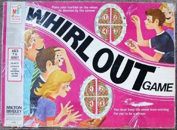 In Whirl Out, luck and skill both come into play as players try to keep their marbles on the whirling wheel. During the game, players spin to determine into which section of the 3-D wheel they must place one of their colored marbles. After the marble is placed into one of the marble holders on the wheel, the wheel will turn under the weight of the marble...