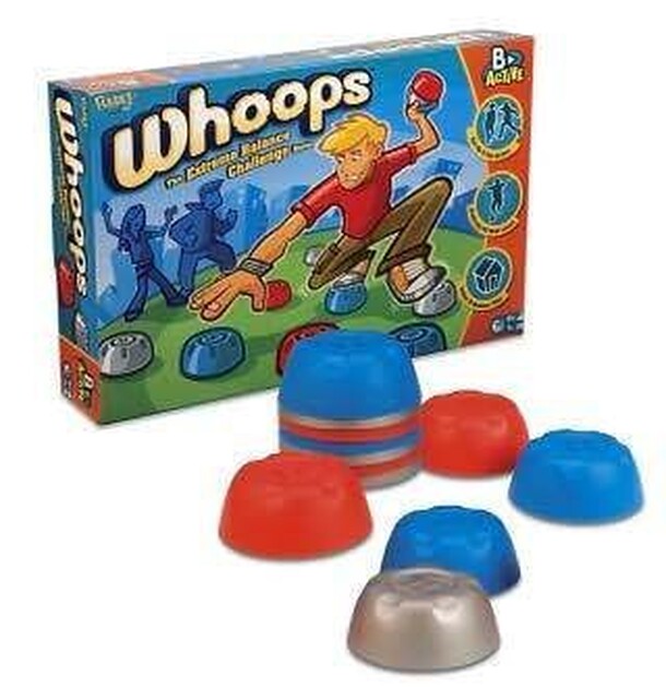 From the Manufacturer: There are 12 Whoops stepping stones on the floor. Players challenge their balancing skills in this whole body game that requires agility and coordination. To play Whoops, players take turns placing numbered stones in any pattern they choose. Players must then pick up each stone in numerical order - but they have to balance on the...