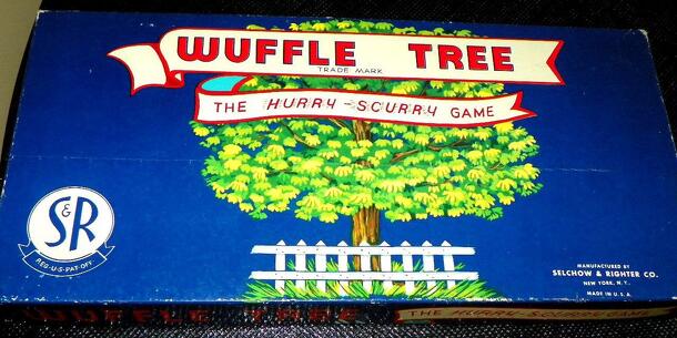 Wuffle Tree is played by two, three, or four players. Each player begins by randomly selecting Wuffles, which are forty-eight cardboard discs in four colors and numbered one through eight. The game board depicts a tree with thirty-two holes for the Wuffles to fit into, each with a number value next to it. The game begins with someone saying "Go," and all...